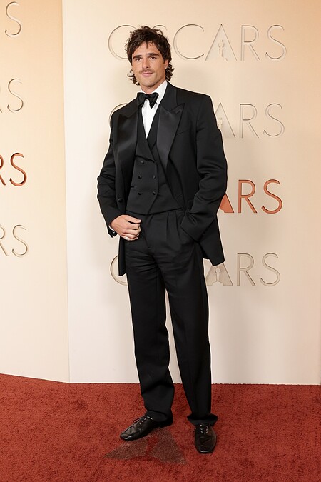 雅各艾洛迪再度選擇Bottega Veneta的三件式西裝登上奧斯卡紅毯,帥度依舊!