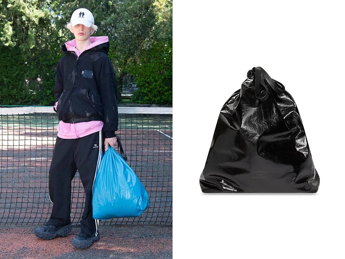 雖然說(shuō)這次的之亂真的跟巴黎世家無(wú)關(guān),但網(wǎng)友們之所以會(huì)覺(jué)得如此理所當(dāng)然,其實(shí)不是沒(méi)有原因。早在2022秋冬系列中,Balenciaga 真的推出過(guò)一款名為的手袋。這款大型的手袋,外型刻意做成垃圾袋的模樣,就連鬆軟的皺褶與輪廓都非常還原,但整體是用小牛皮材質(zhì)打造,當(dāng)時(shí)也引發(fā)一波熱議。也正因?yàn)檫@樣的品牌背景,當(dāng)這幾個(gè)元素同時(shí)出現(xiàn)時(shí),大眾其實(shí)很容易自動(dòng)拼湊出一個(gè)合理的故事!