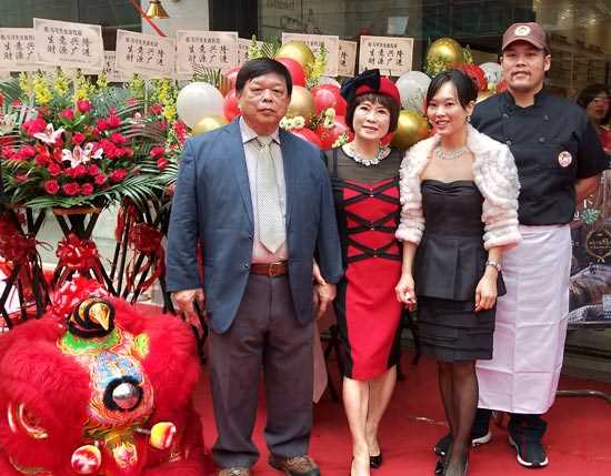 (陳禹盛、王麗珠、陳明苓一家人和主廚在廣州旗艦店開業(yè)現(xiàn)場)
