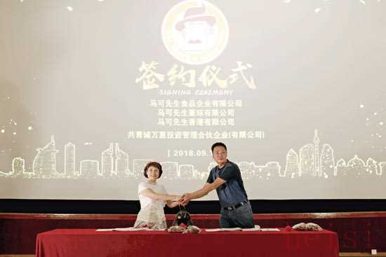 (王麗珠與王永超在馬可先生面包拓展大陸市場前的簽約儀式上)