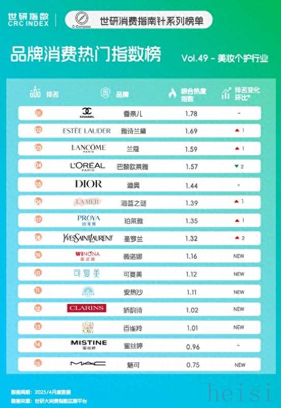 以下是美妝個護品牌TOP15,以及美白和防曬訴求進階的世研消費指數(shù)品牌榜Vol.49: