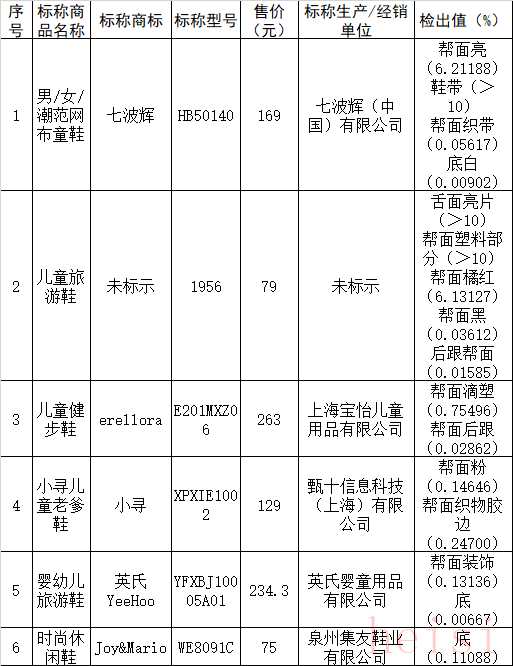 值得注意的是,七波輝男/女/潮范網布童鞋樣品鄰苯二甲酸酯檢出值超過限量值100倍以上。
