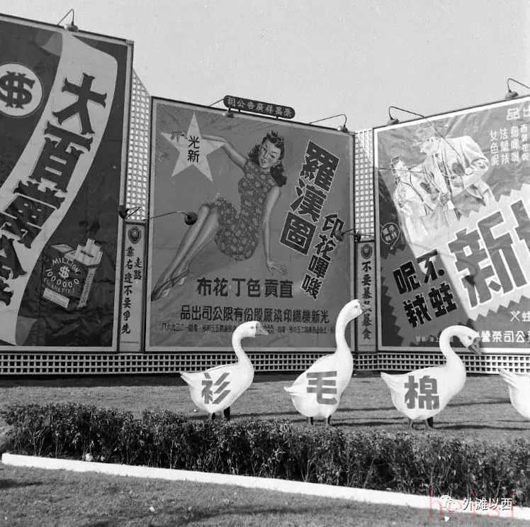 同樣是這片草坪上,5只鵝形立牌,正是五和織造廠“鵝”牌衛(wèi)生衫的廣告。