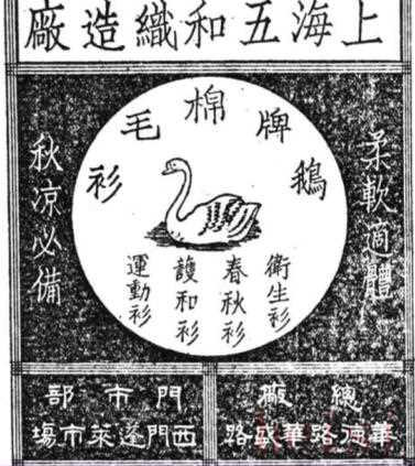棉毛衫的鵝形廣告牌也有。這種新穎獨(dú)特的廣告牌在當(dāng)時(shí)非常引人注目,甚至在廣告史上也是非常著名的一個(gè)案例。 1937年,“八一三”淞滬會戰(zhàn)爆發(fā), 虹口、閘北、南市的一些針織廠被日軍炮火炸毀,被迫關(guān)閉。1938年,因南洋市場需求激增,針織業(yè)繁榮,景福、公和、五倫、盈康、啟新、裕豐、大隆、滬光等針織廠在租界內(nèi)開辦。到20世紀(jì)40年代初,全市針織內(nèi)衣廠增至100余家,襪廠及手套廠400余家。1941年,太平洋戰(zhàn)爭爆發(fā),上海針織業(yè)日漸蕭條,直到抗日戰(zhàn)爭勝利,針織廠才又大量開設(shè)。