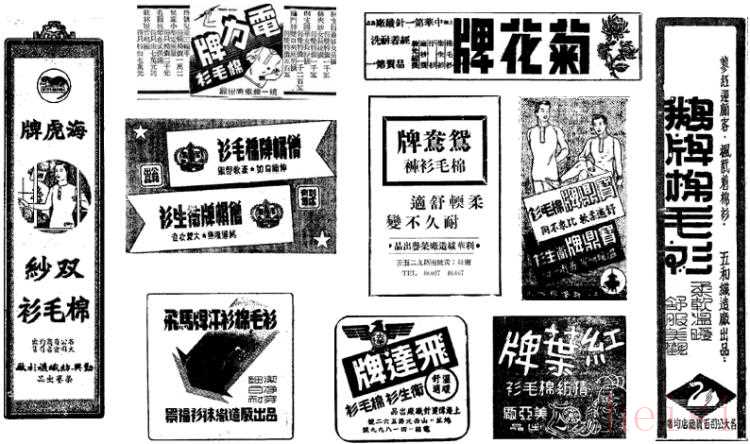20世紀(jì)30、40年代上海報(bào)刊上各種品牌的棉毛衫褲廣告