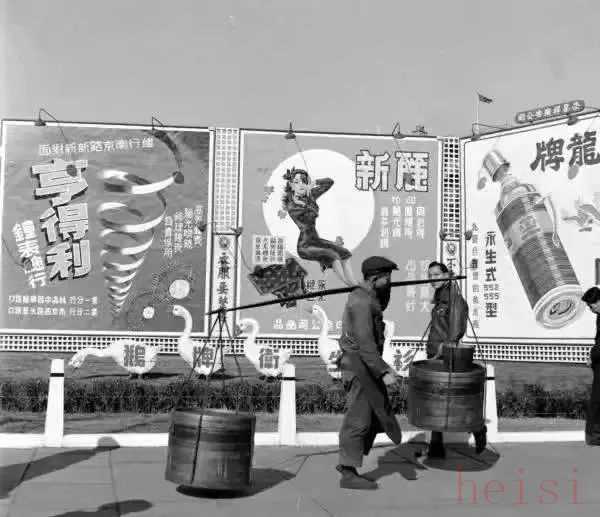 20世紀(jì)30、40年代,靜安寺路成都路口仙樂斯跳舞場門前草坪上,可見“僧帽牌”棉毛衫、衛(wèi)生衫戶外廣告。