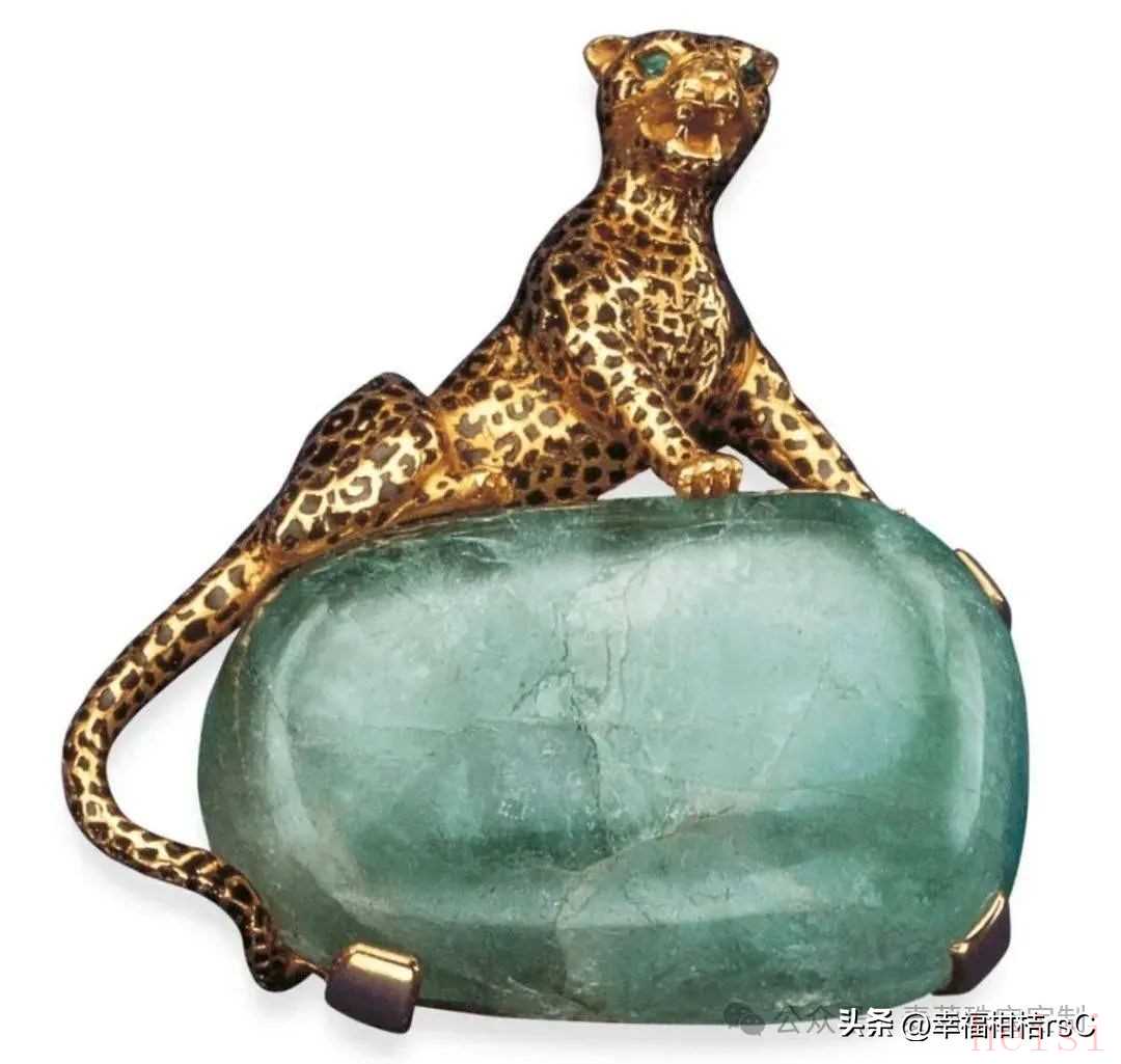 1925年,卡地亞以雕刻成葉片的藍寶石和紅寶石搭配祖母綠,打造出首枚手鏈。這種風格后來被稱為“TuttiFrutti”水果錦囊。1948年溫莎公爵為愛妻訂制的獵豹胸針,這是卡地亞首次呈現(xiàn)立體的獵豹形象。由黃金打造的獵豹,盤立于一顆116克拉凸圓型切割祖母綠之上。