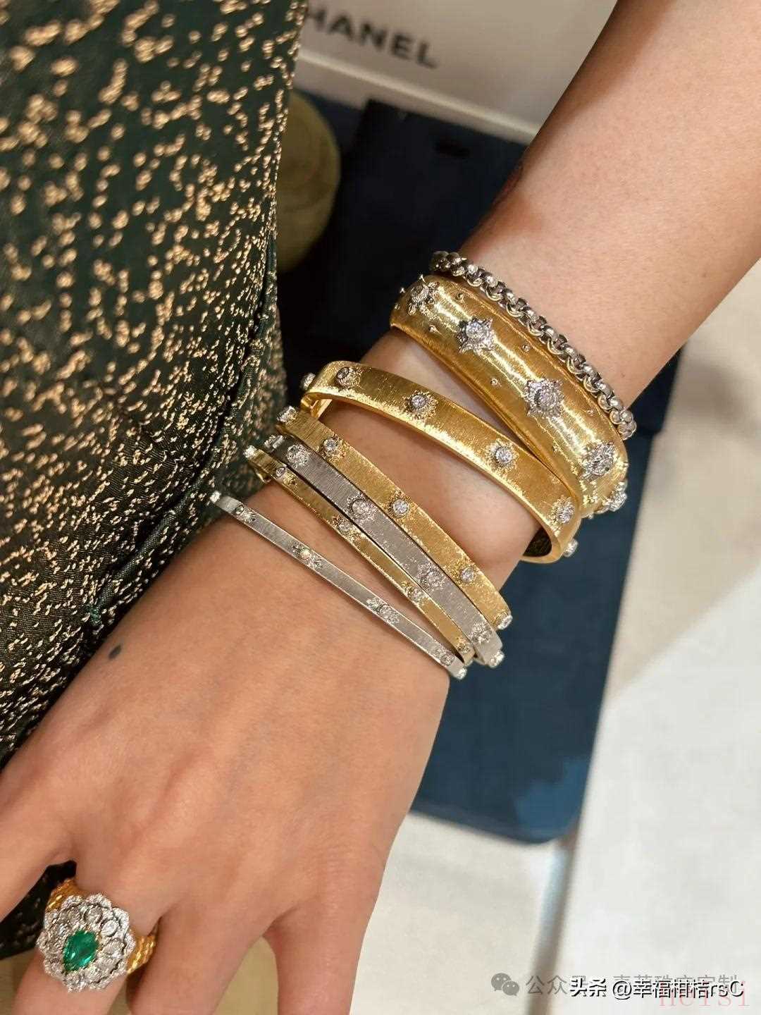 07布契拉提1919年,創(chuàng)始人馬里奧·布契拉提于米蘭開設(shè)了第一家同名珠寶店,因其與眾不同的手工技藝和充滿藝術(shù)美學的設(shè)計而贏得了無數(shù)人的青睞,被譽為“金匠王子”??椉y雕金工藝,是文藝復興時期金匠們廣為使用的一種雕金技法,通過對金屬上的雕刻處理,在金屬表面呈現(xiàn)出織物的效果。后來逐漸失傳,直到在20世紀初由布契拉提再次復興并發(fā)揚。Macri系列,使用Rigato工藝匠細膩的黃金勾勒成曼妙弧線,呈現(xiàn)出綢緞般的柔情光澤。這種工藝需要手工師傅極大的耐心和至臻的手法,用平行線的方式切割金屬表面,間隔比發(fā)絲還細密,拉絲平行而縝密,質(zhì)感絲滑如綢緞,光芒溫潤如滿月。