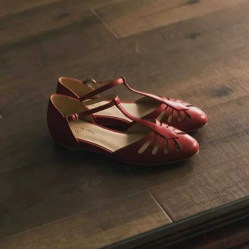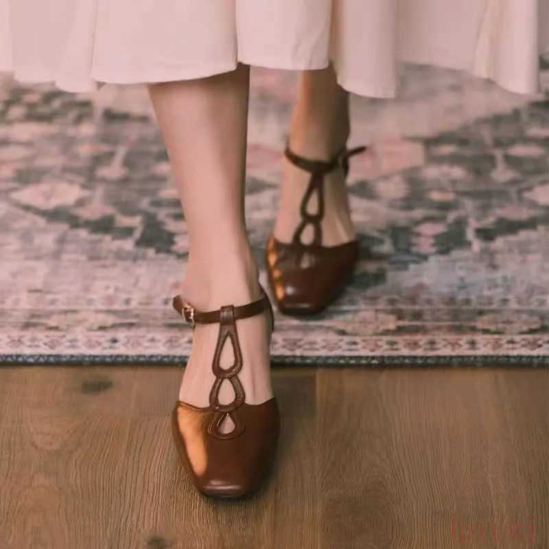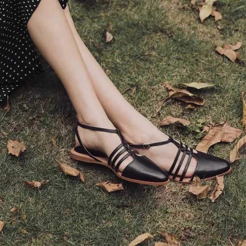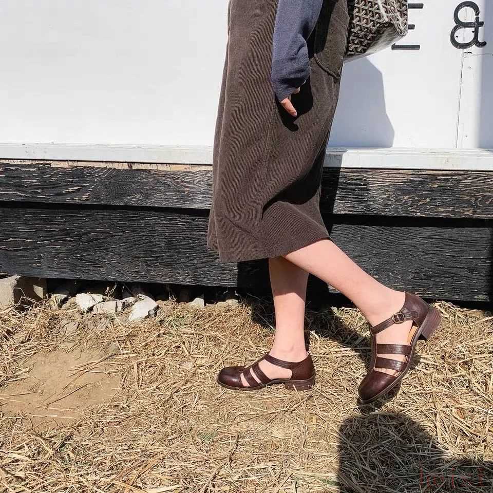 棕色的涼鞋自帶復古感,T字型設計非常像舞鞋,穿上它走路都忍不住踮起腳尖。