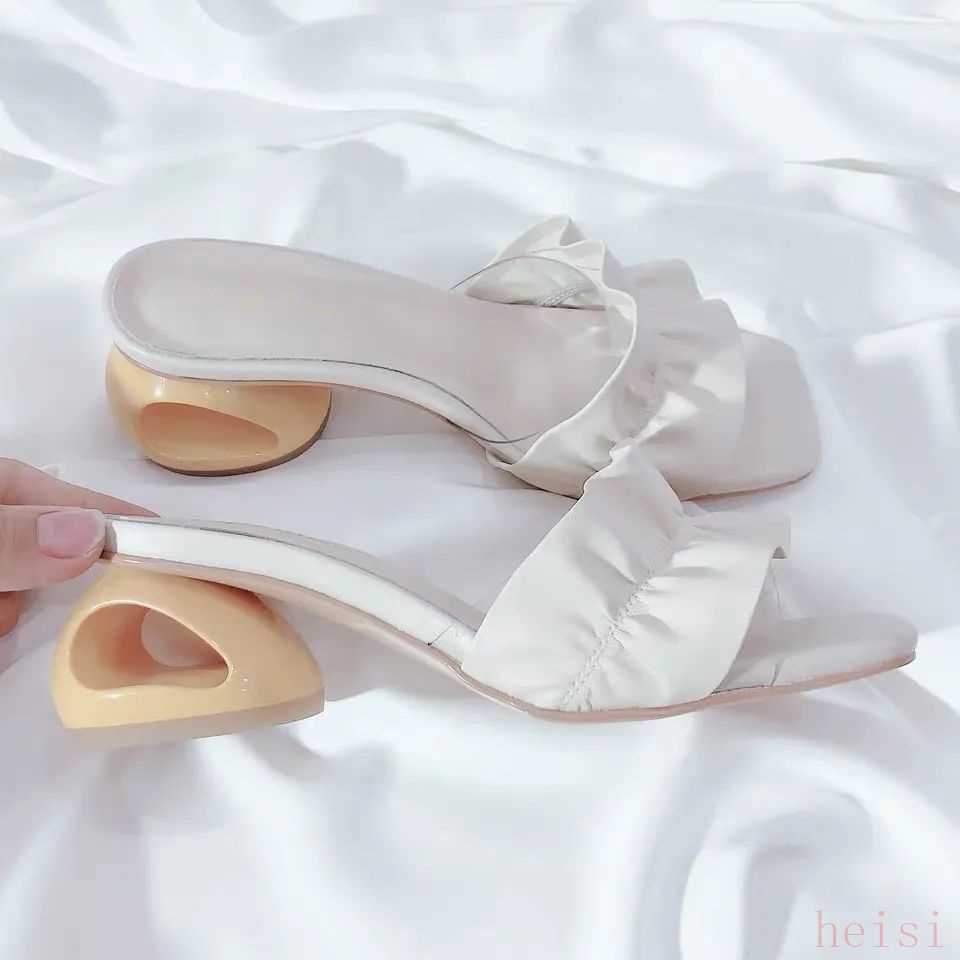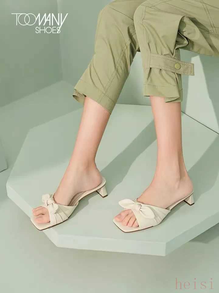 我看上了兩雙涼拖,第一雙是白色方頭涼拖,小蝴蝶結的設計不會太夸張,但又增加了一點少女感,青澀跟優(yōu)雅平衡得剛剛好。