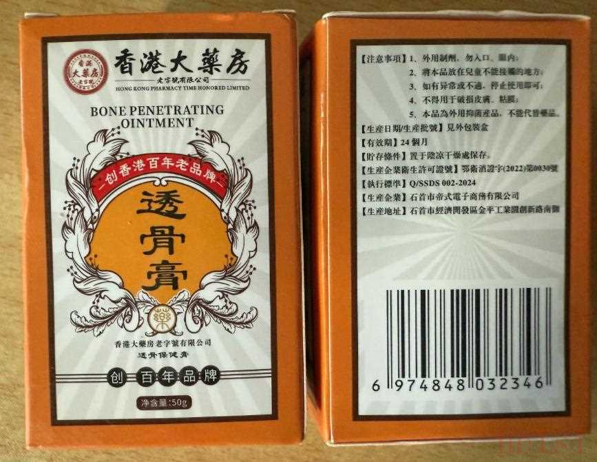 該店一款透骨膏宣稱可適用風(fēng)濕類風(fēng)濕、腰間盤損傷等16種疼痛,支持全身通用且能快速緩解,并在外包裝上標(biāo)注“香港大藥房”“創(chuàng)香港百年老品牌”。