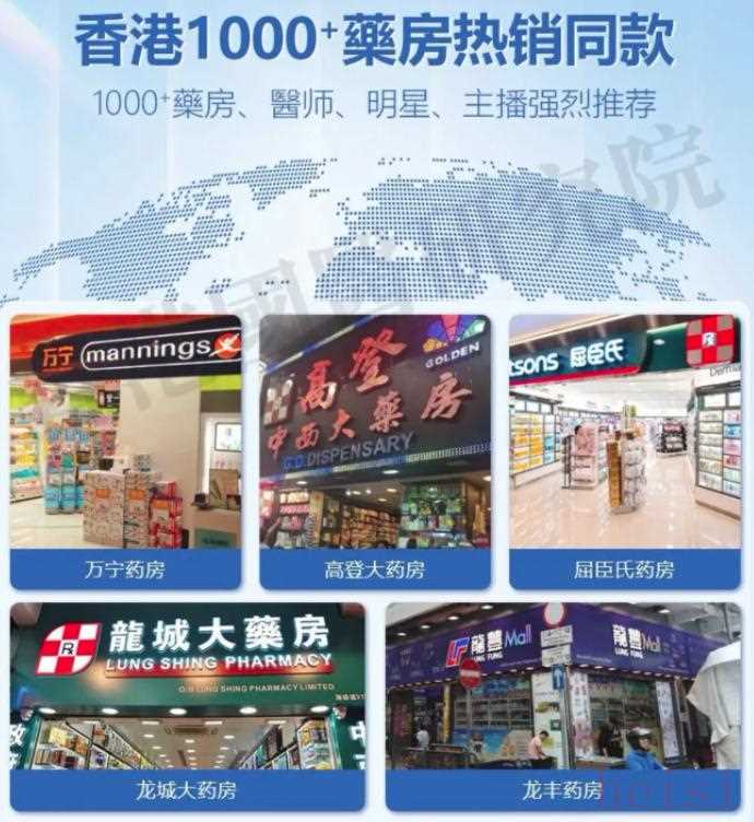 此外該商品還標(biāo)注了“屈臣氏藥房”“萬(wàn)寧藥房”等5家香港藥房為銷售渠道