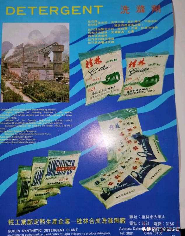 上個世紀(jì)六十年代末,桂林洗滌劑面世,這是廣西的第一款省內(nèi)洗衣粉,在這以前,當(dāng)?shù)匕傩沼玫乃邢礈煊闷范际且揽客馐∩a(chǎn)的。