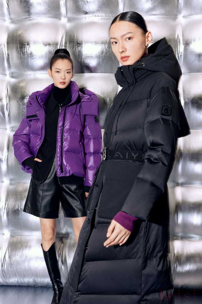 款式方面,艾萊依摒棄了傳統(tǒng)羽絨服單調(diào)的設(shè)計(jì),將“時(shí)裝化”理念融入其中,肌理感面料、連帽圍巾、印花等,小眾且不撞款。