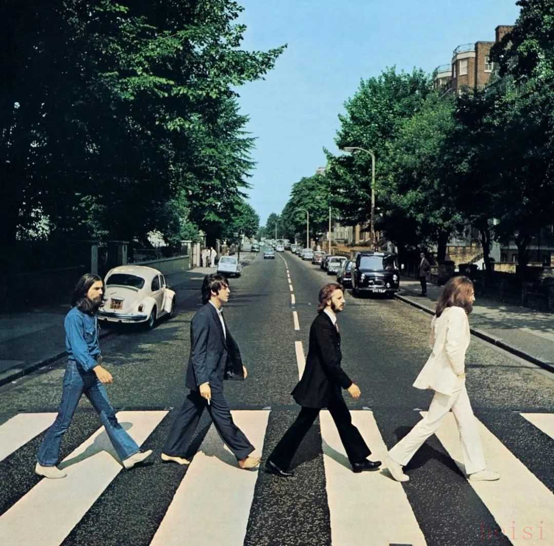 David Bowie繞不開的經(jīng)典,Beatles披頭士樂隊的著名專輯《艾比路》封面中,四人所穿的就是不同材質(zhì)和款式的喇叭褲。