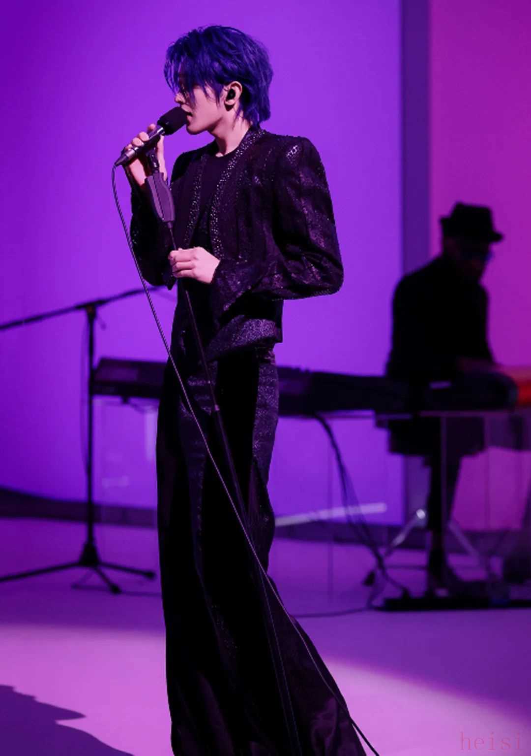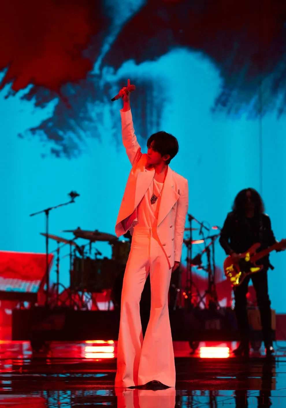 李宇春譬如蔡徐坤,各種亮片刺繡,配合搖曳的燈光,就是舞臺上最耀眼的搖滾歌星。