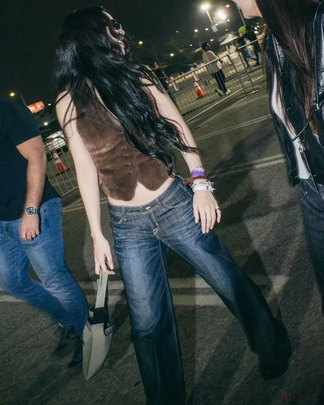 以及堪稱點睛之筆的復古高馬尾,做舊寬皮帶……如果不看臉還以為是20年前的街拍,每一處都閃爍著千禧年代的光芒,不愧是有名的Y2K女王。