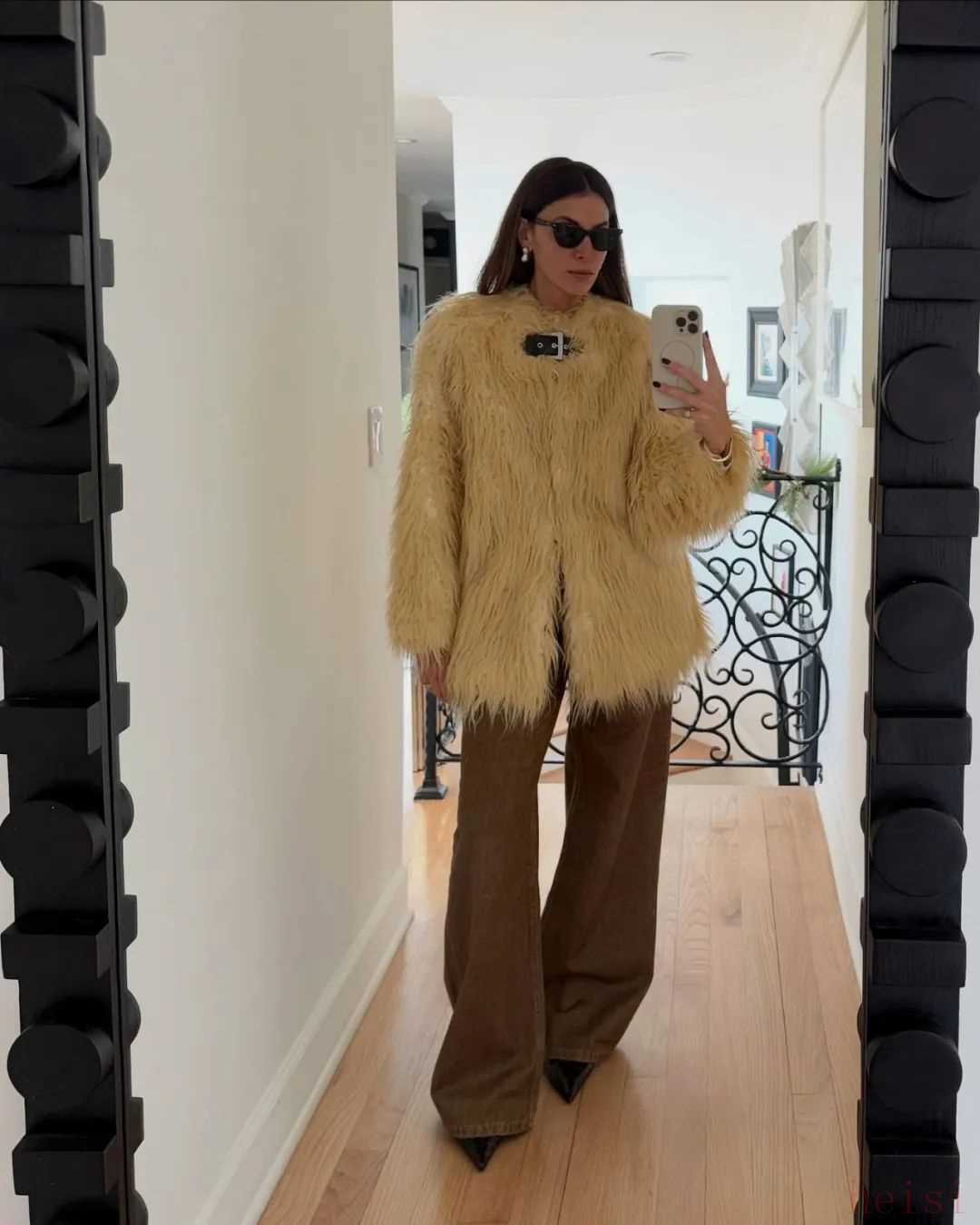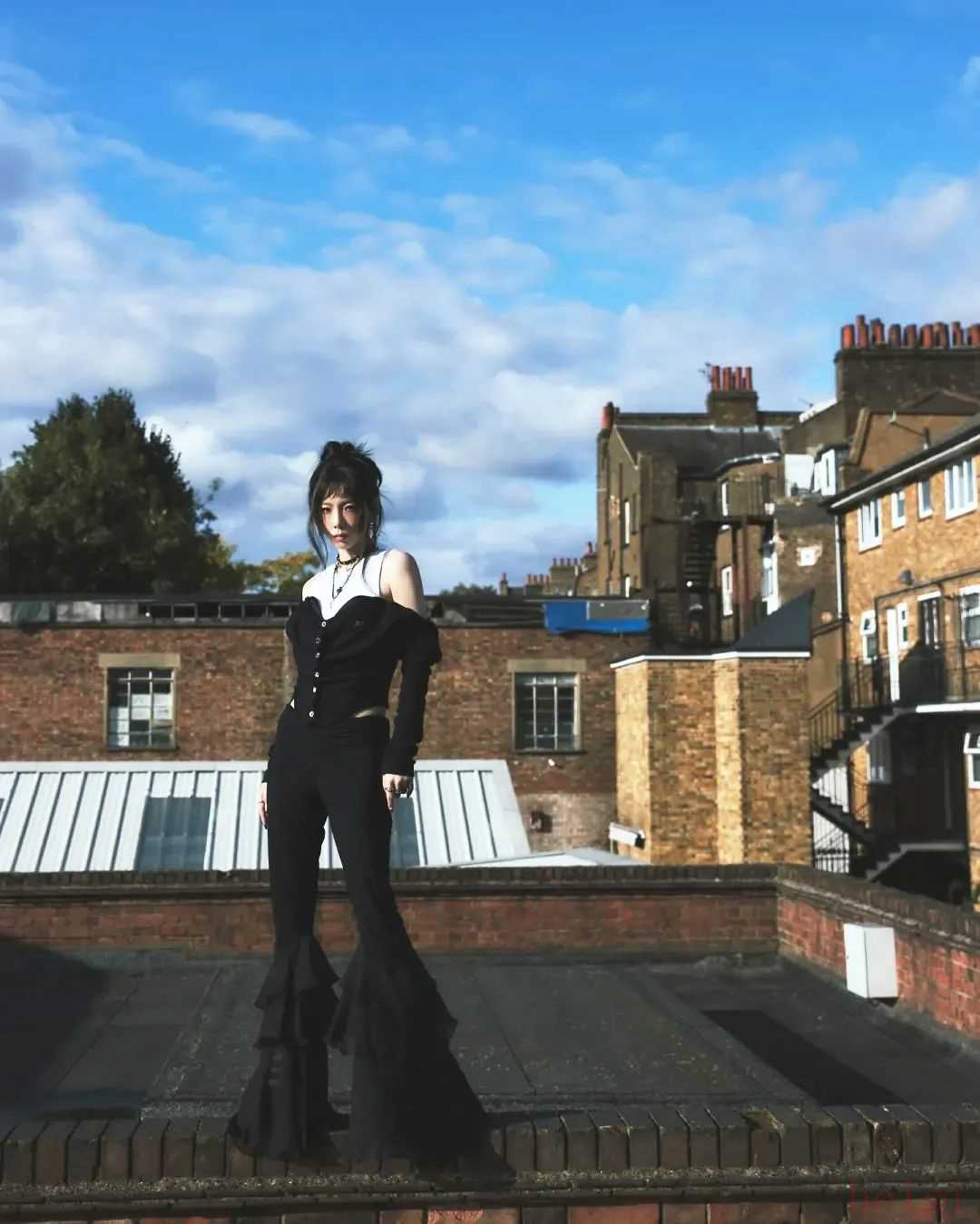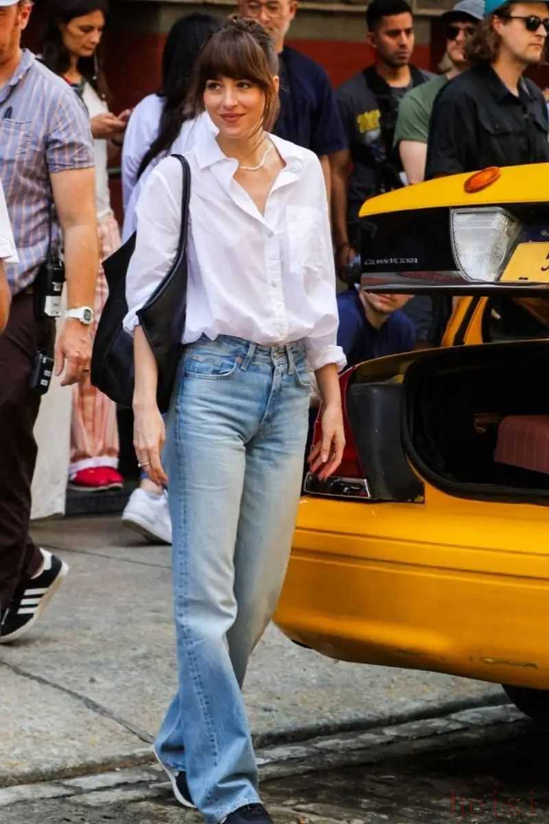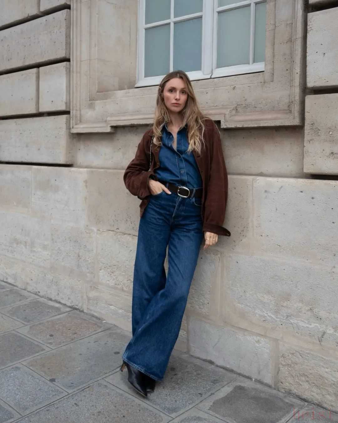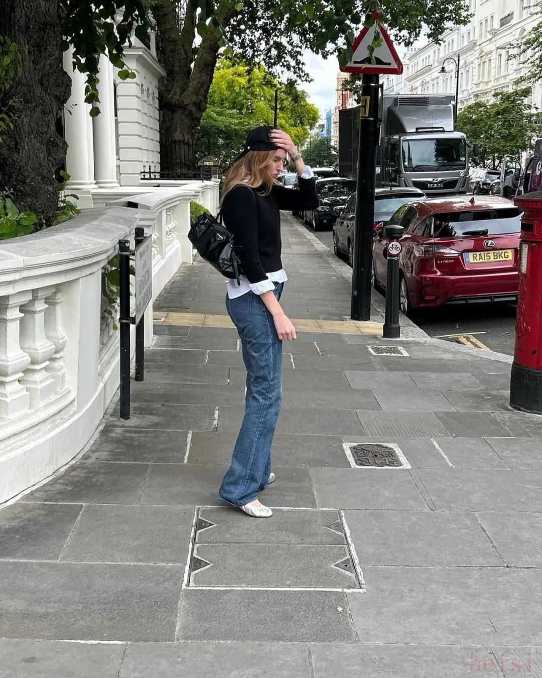 細數(shù)她這半年多來的街拍,我發(fā)現(xiàn)最受矚目的當屬這條被她穿了又穿的——喇叭褲。