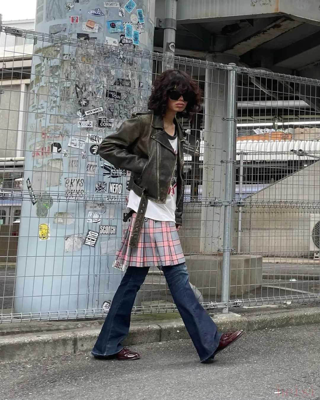 這時候喜歡街頭風的,還可以選擇飄逸的蕾絲網(wǎng)紗半裙、格子半裙疊搭喇叭褲,搖身一變成最酷的街頭少女。