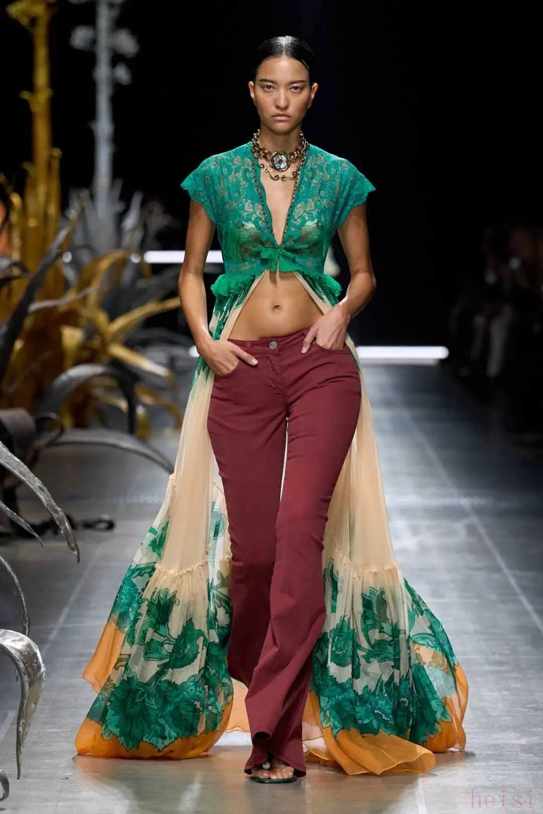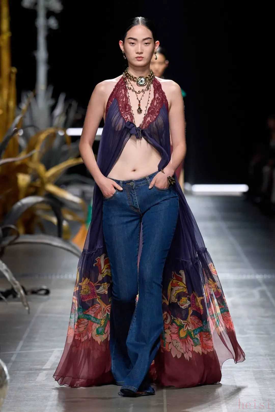Valentino Spring 2025一向走波西米亞風的Etro,本季則配合著浪漫的植物提花,一秒將我們拉到濃濃的海島度假氛圍之中,感覺是最近熱播美劇《白蓮花度假村》第三季里,家境富裕階層的女主們會挑的款。