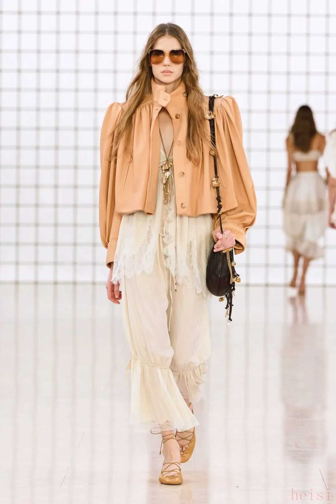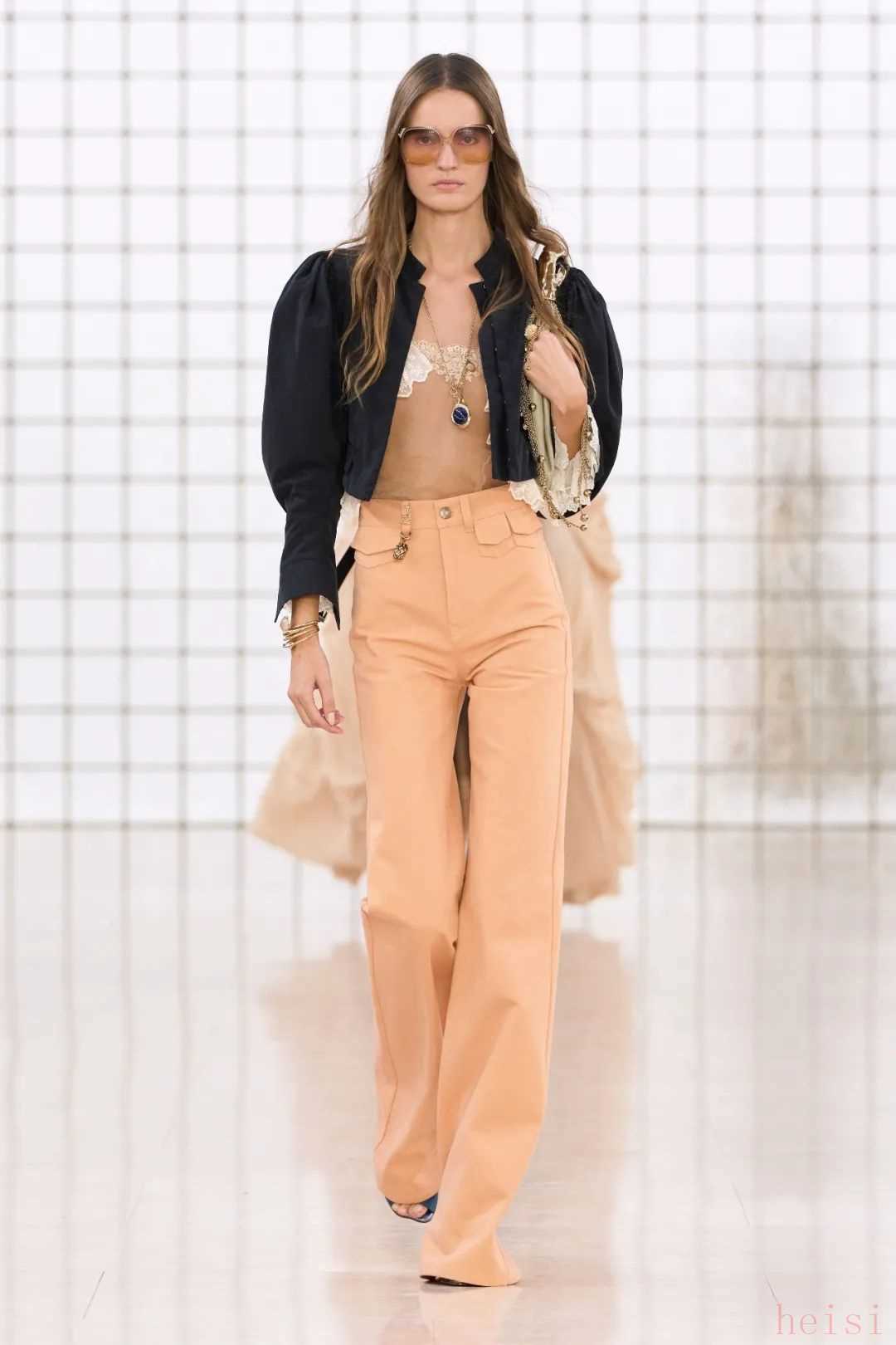 Chloé Resort 2025無窮無盡的透視薄紗、層層疊疊的荷葉邊、復古精致的蕾絲,和利落又自帶柔美氛圍的喇叭褲,怎么能說不是天作之合呢?