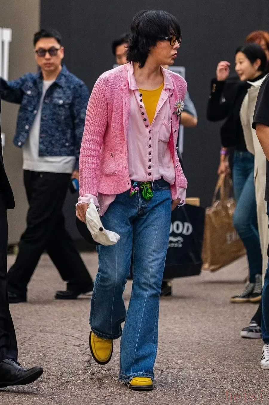 一代潮流風向標權志龍更是喇叭褲的忠實愛好者。各種妖艷的色彩,以及繁復配飾的加持,你可以說他的穿搭古怪,但絕不會覺得無聊或無趣。