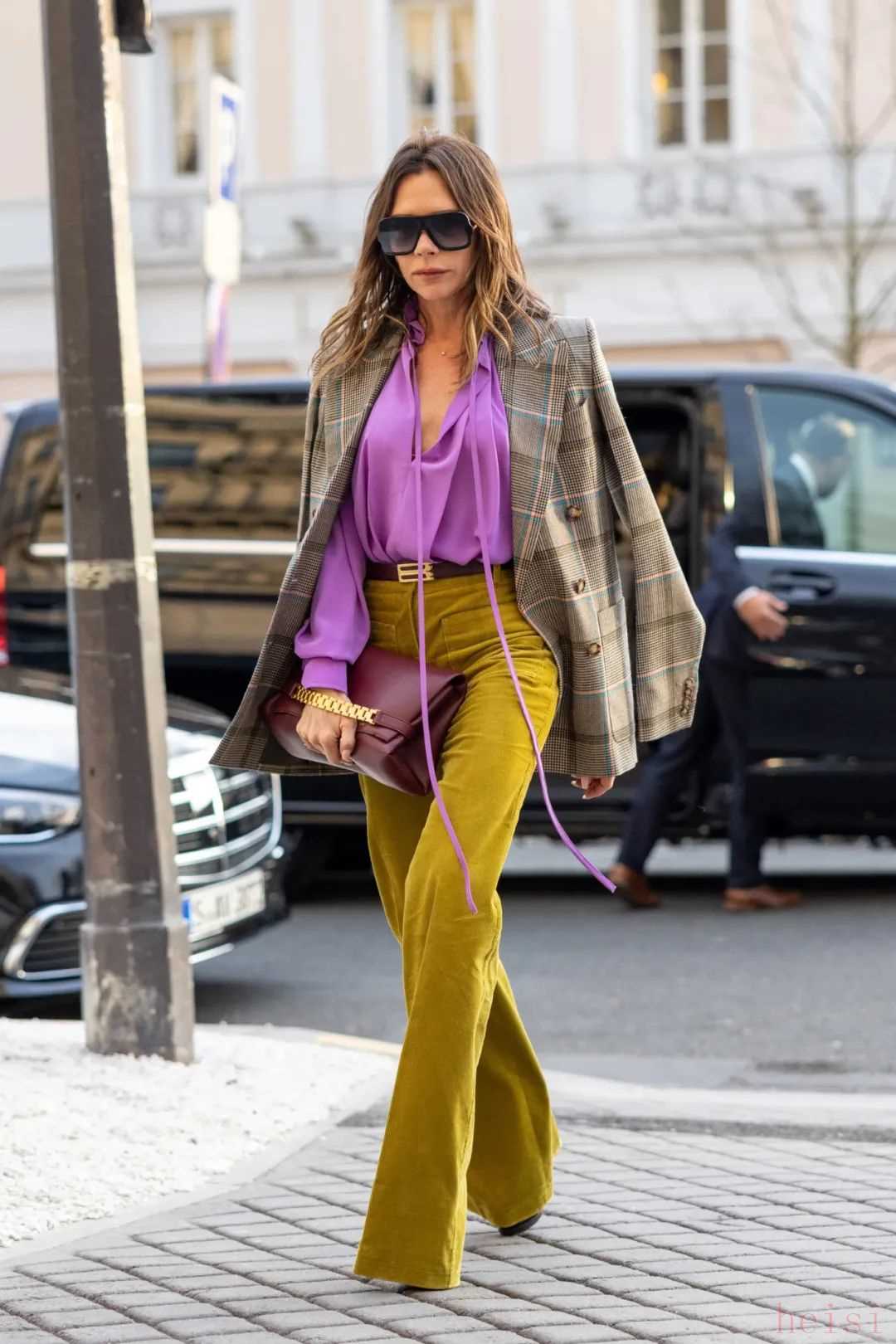 現(xiàn)在追求的是長到腳面,甚至微微拖地的長度,更心機一點,可以讓你內(nèi)藏一雙高跟鞋、高跟靴,悄悄增高,然后驚艷所有人。這種穿搭一向是貝嫂Victoria Beckham的最愛,氣場拉滿,所向披靡。