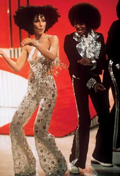 Cher and Michael Jackson翻看那時候的照片,嬉皮士的流行到搖滾樂的興起,影響后來一代又一代人的樂隊、歌星,他們的穿搭中都頻繁出現(xiàn)過喇叭褲的身影。這件單品就是個性、張揚、叛逆的代名詞。