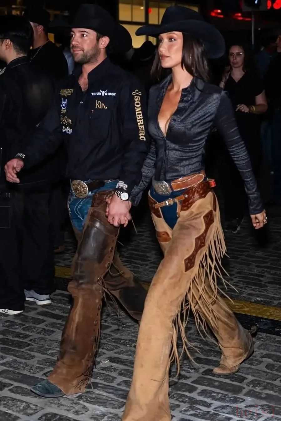 材質(zhì)、配飾換一換,搭配牛仔寬檐帽or麂皮流蘇挎包,立即又變身成馬路上最颯的西部牛仔女郎。