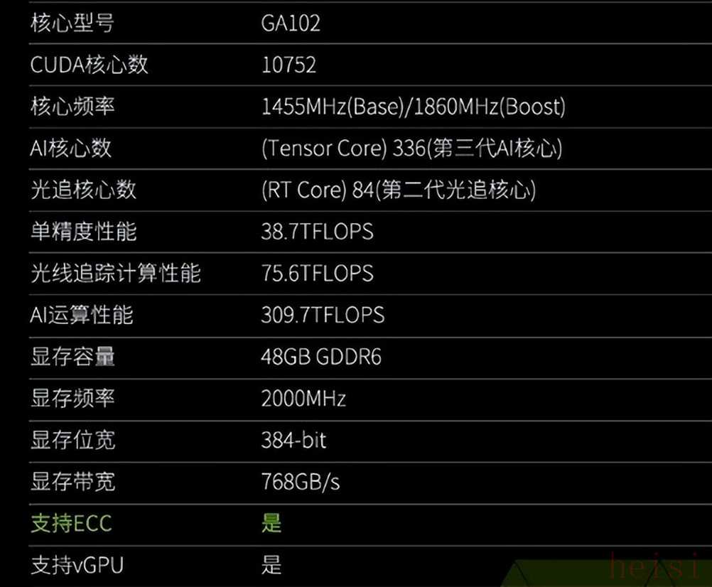 另外對比此前發(fā)布的RTX A6000顯卡,不難發(fā)現(xiàn)兩款產(chǎn)品其實(shí)采用了完全相同的核心,都是GA102,都是10752個(gè)CUDA,甚至Boost頻率都是1860MHz,而目前RTX A6000在京東的售價(jià)為34799元,那么這兩款產(chǎn)品到底有什么區(qū)別?