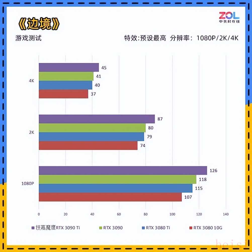 在另外一款國產(chǎn)游戲《邊境》的跑分軟件中,情況基本與《光明記憶:無限》相同,測試條件均在“RTX最高/DLSS質(zhì)量”下進(jìn)行。