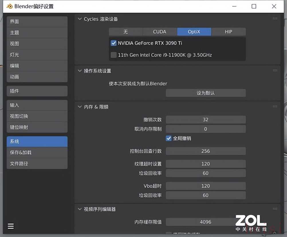 首先還是設(shè)置渲染設(shè)備,Blender默認(rèn)使用CPU渲染,這里選擇RTX 3090 Ti。