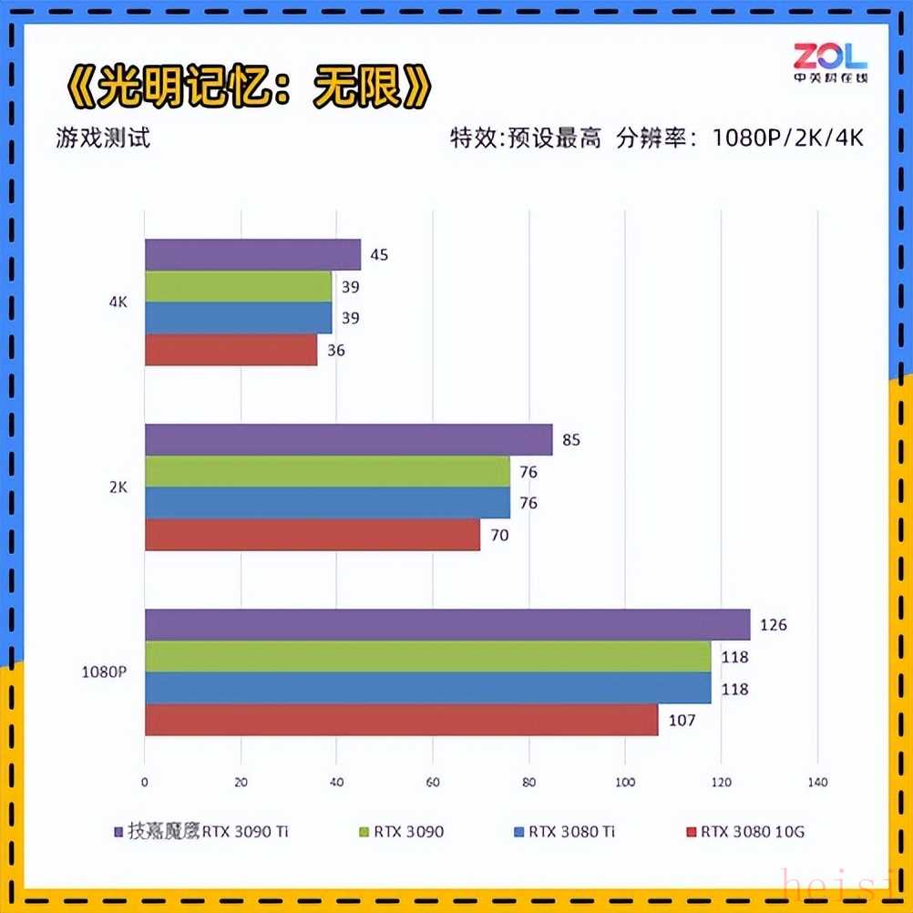 不過即便強(qiáng)如RTX 3090 Ti,在4K分辨率下也沒有達(dá)到60幀?!豆饷饔洃洠簾o限》的benchmark測試似乎將光線追蹤用到了極致。