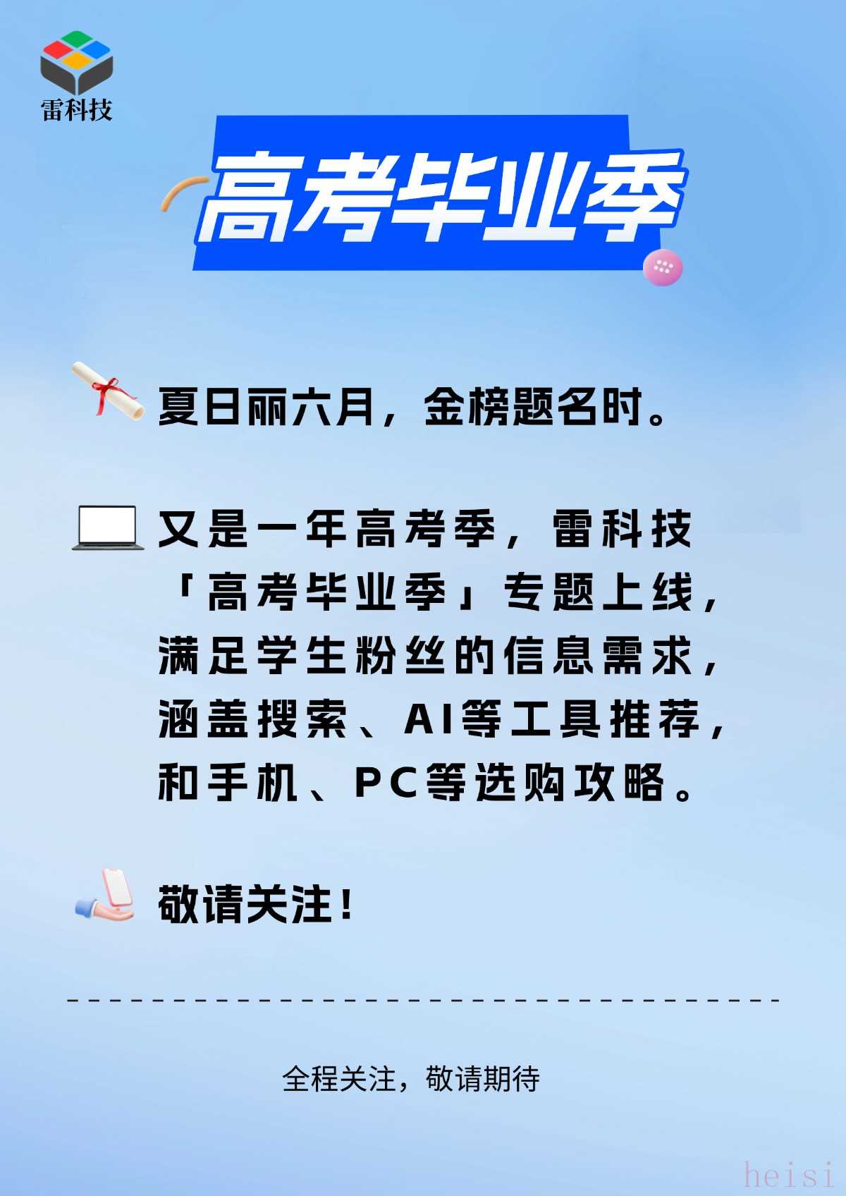 又是一年高考季,雷科技「高考畢業(yè)季」專題上線,滿足學(xué)生粉絲的信息需求,涵蓋搜索、AI等工具推薦,和手機(jī)、PC等選購攻略。
