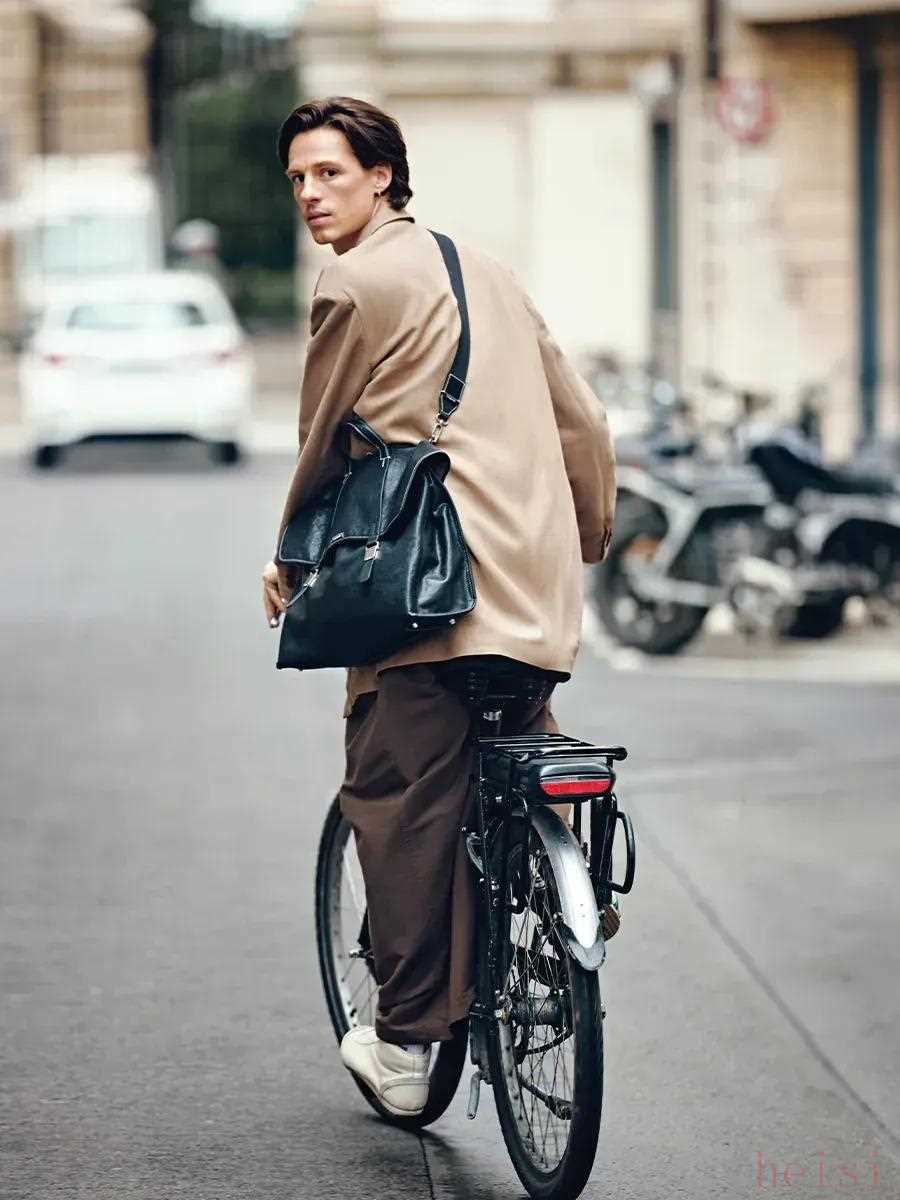 男生用起來也超級(jí)好看,而且非常百搭。來到展覽現(xiàn)場的巴黎歌劇院芭蕾舞團(tuán)首席,也是巴黎奧運(yùn)會(huì)開幕式的舞者Germain Louvet,就和山下有松的包包滿分適配,騎上一輛復(fù)古自行車,就是最帥的巴黎Boy~