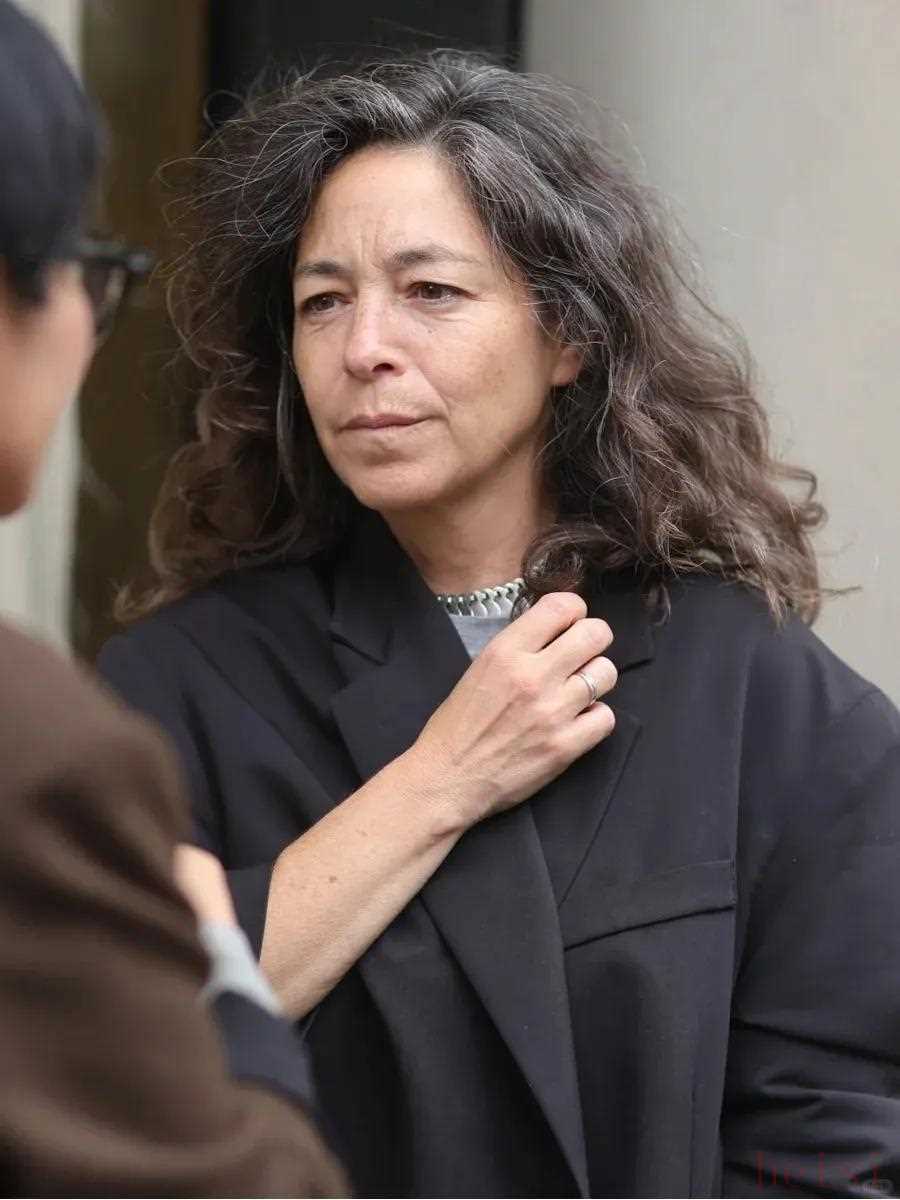 法國時(shí)裝學(xué)院公共關(guān)系總監(jiān)Marie Schneier也來到展覽現(xiàn)場。絲絲白發(fā)隨意散落在茂密松軟的卷發(fā)間,無需任何華服點(diǎn)綴,松弛感瞬時(shí)拉滿,太法式女人。