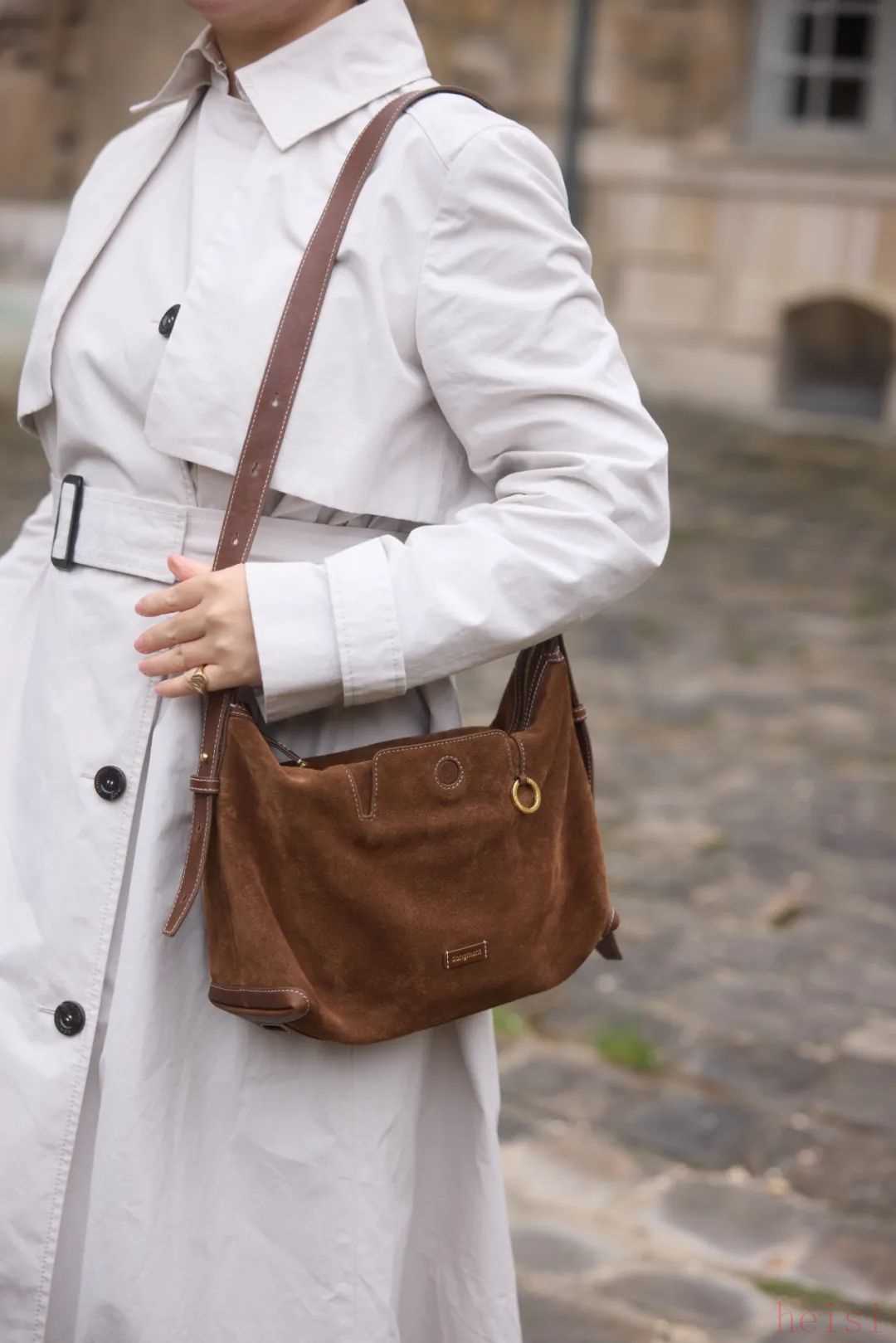我這次在巴黎背了一個(gè)棕色麂皮的小號(hào)旅行袋↓