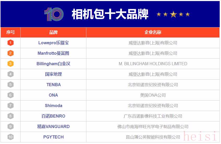 根據(jù)Maigoo的排名,以下是10大相機(jī)包品牌名單,以及一些評價較好的攝影背包品牌: