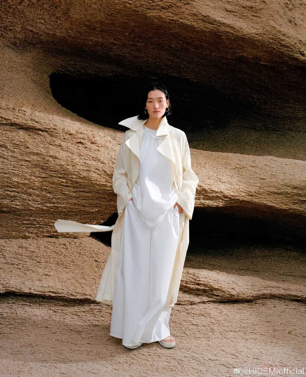 HIDEMI走的是中性極簡風,還有點大女人風的感覺。是2018年才創(chuàng)立的品牌。大片拍得很有氛圍感,模特走的也是high fashion路線,整體看起來很大氣。▼
