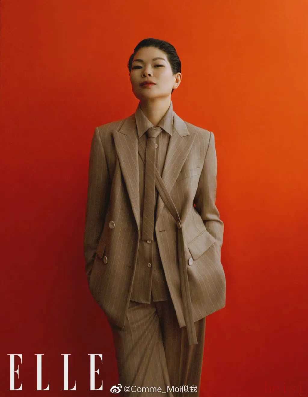去年在熱播劇《完美關系》里,陳數(shù)就穿了好幾次這個品牌的西裝三件套;秦嵐在《怪你過分美麗》里穿了件紅絲絨西裝。墊肩加收腰設計最多。▼