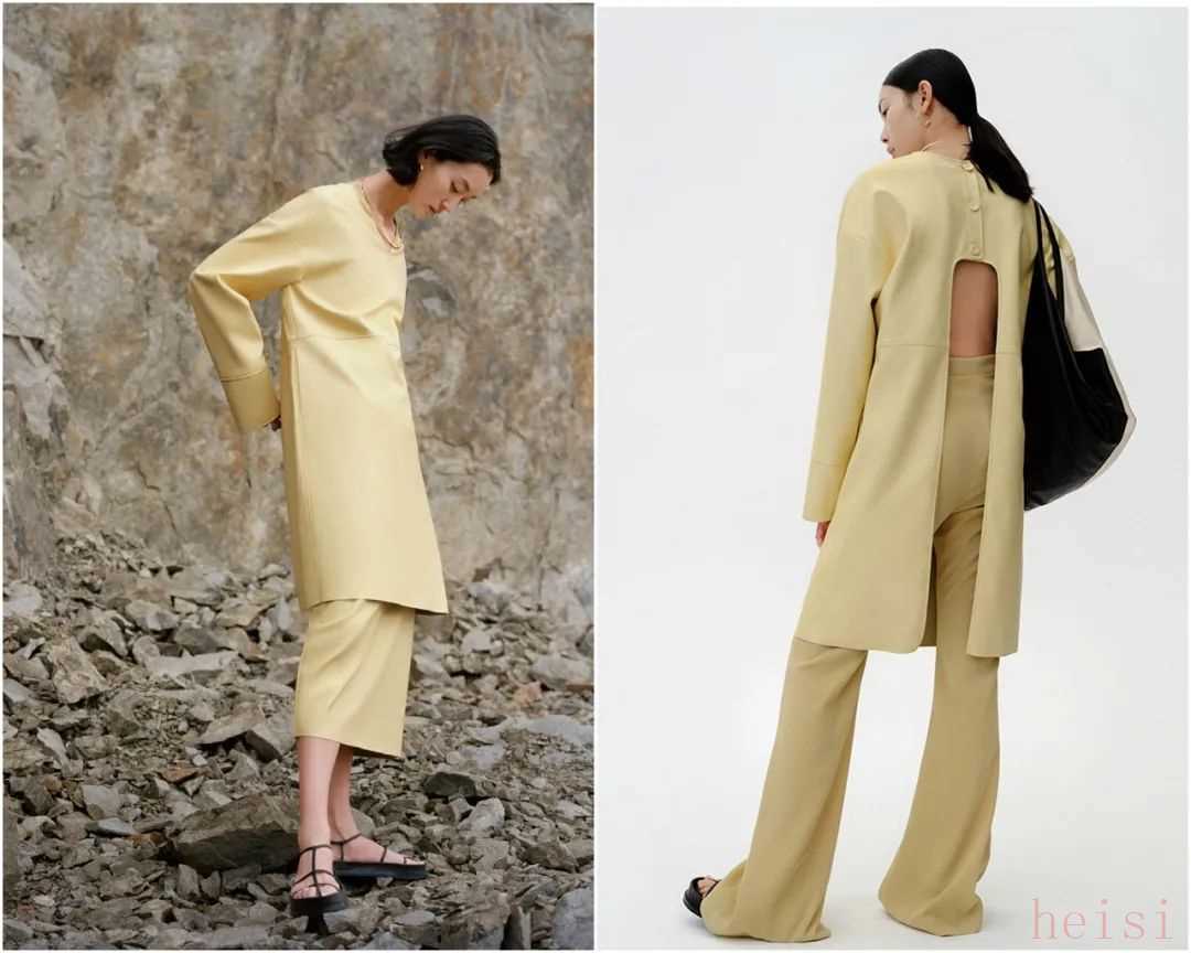 設計師挺喜歡用皮質(zhì)面料的。這款套裝用的是環(huán)保皮材質(zhì),做成了鵝黃色,很春夏。背后還有小心機~不過看得出來無論設計還是搭配,走的都不是傳統(tǒng)顯高顯瘦的路子,所以也比較挑人。▼