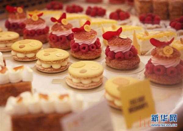 這是9月3日在法國巴黎知名馬卡龍?zhí)鹌返昀侠變扰臄z的馬卡龍衍生的各式甜點。新華社記者 高靜 攝