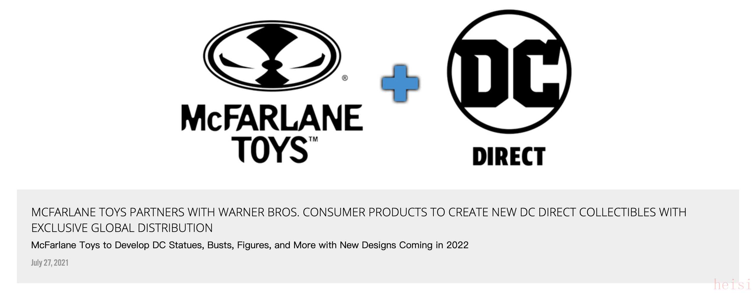 美國玩具廠商麥克法蘭(McFarlane Toys)近日發(fā)布消息,稱將與華納兄弟消費(fèi)品部門(Warner Bros. Consumer Products)展開深度合作,接手DC漫畫的衍生制品品牌“DC Direct”。