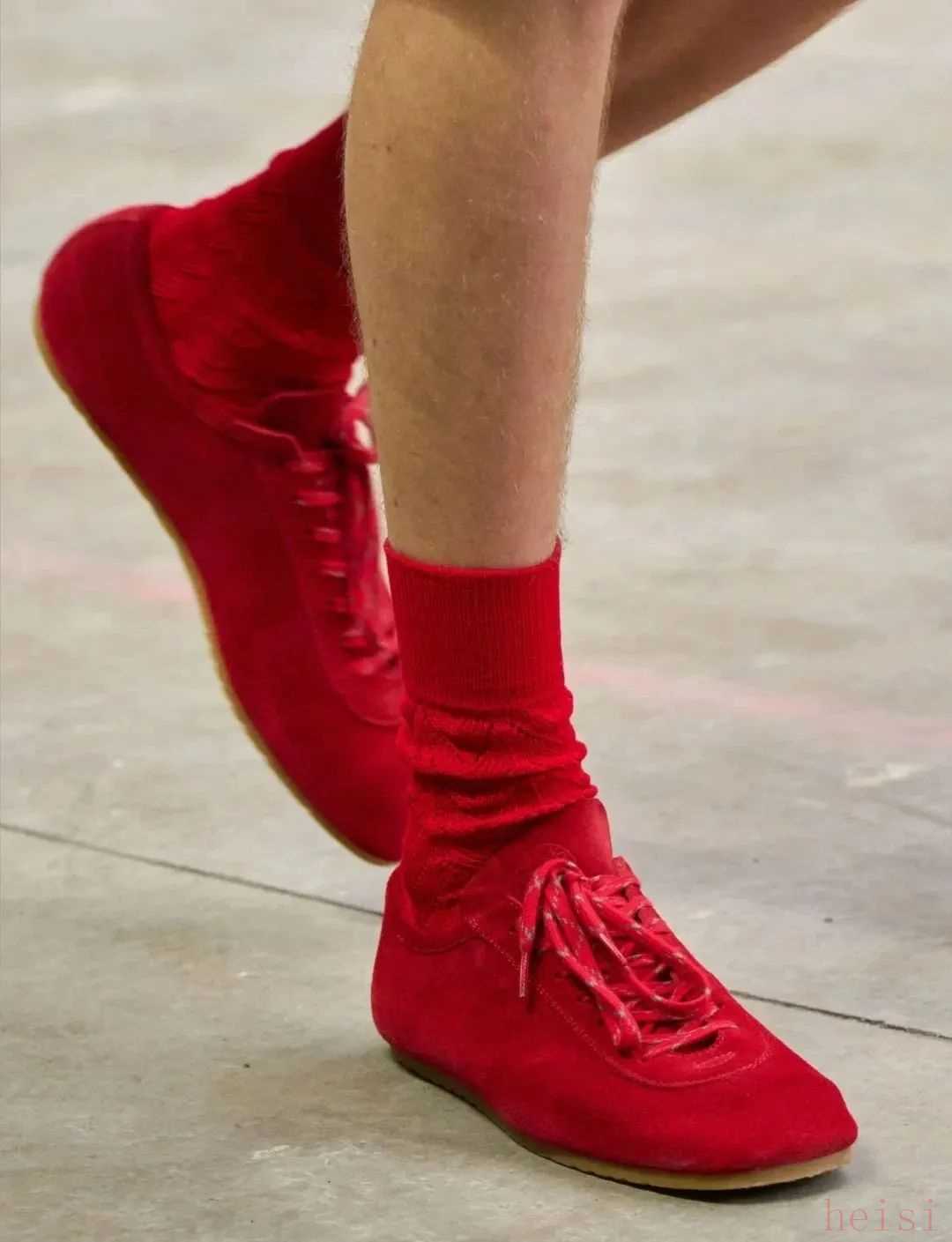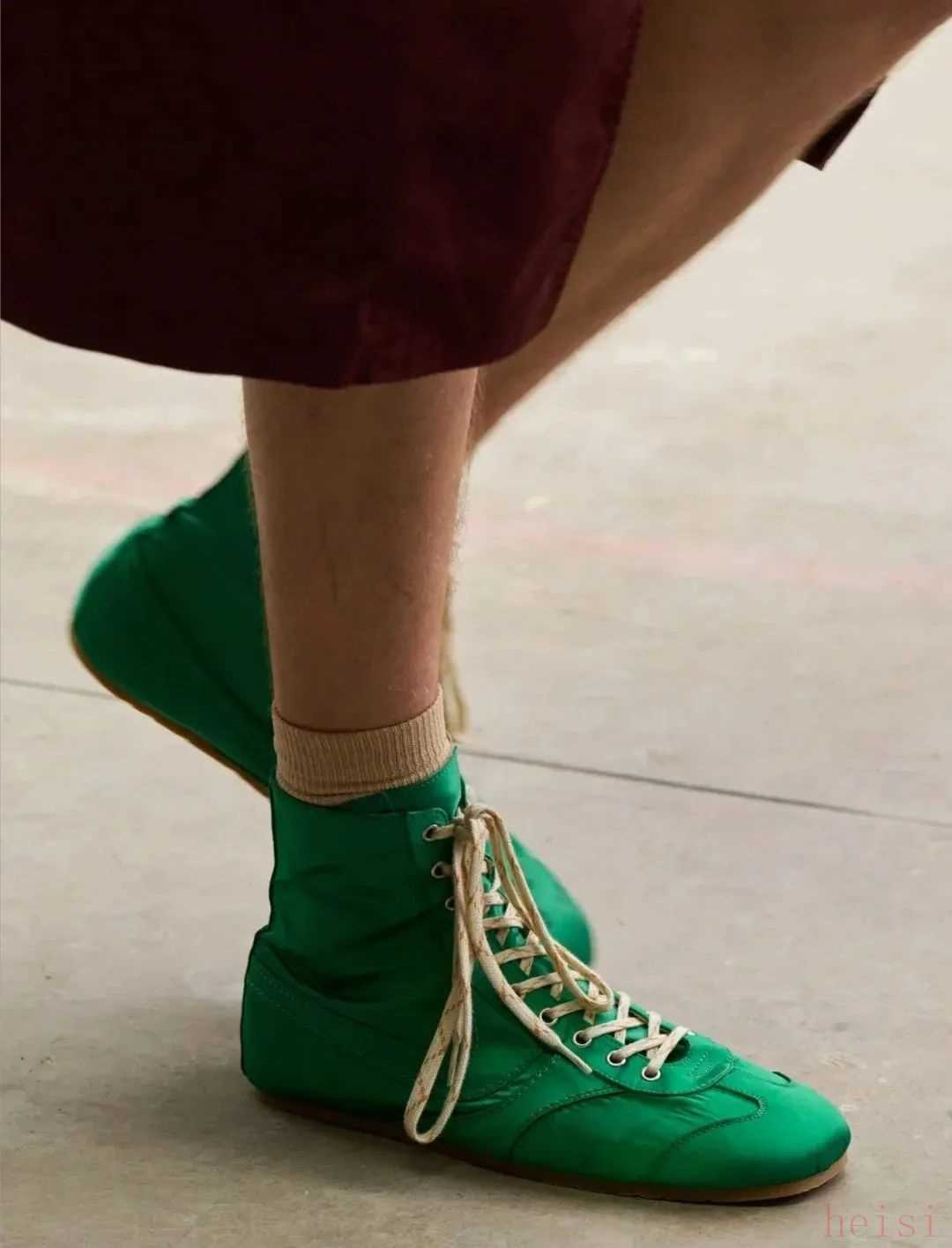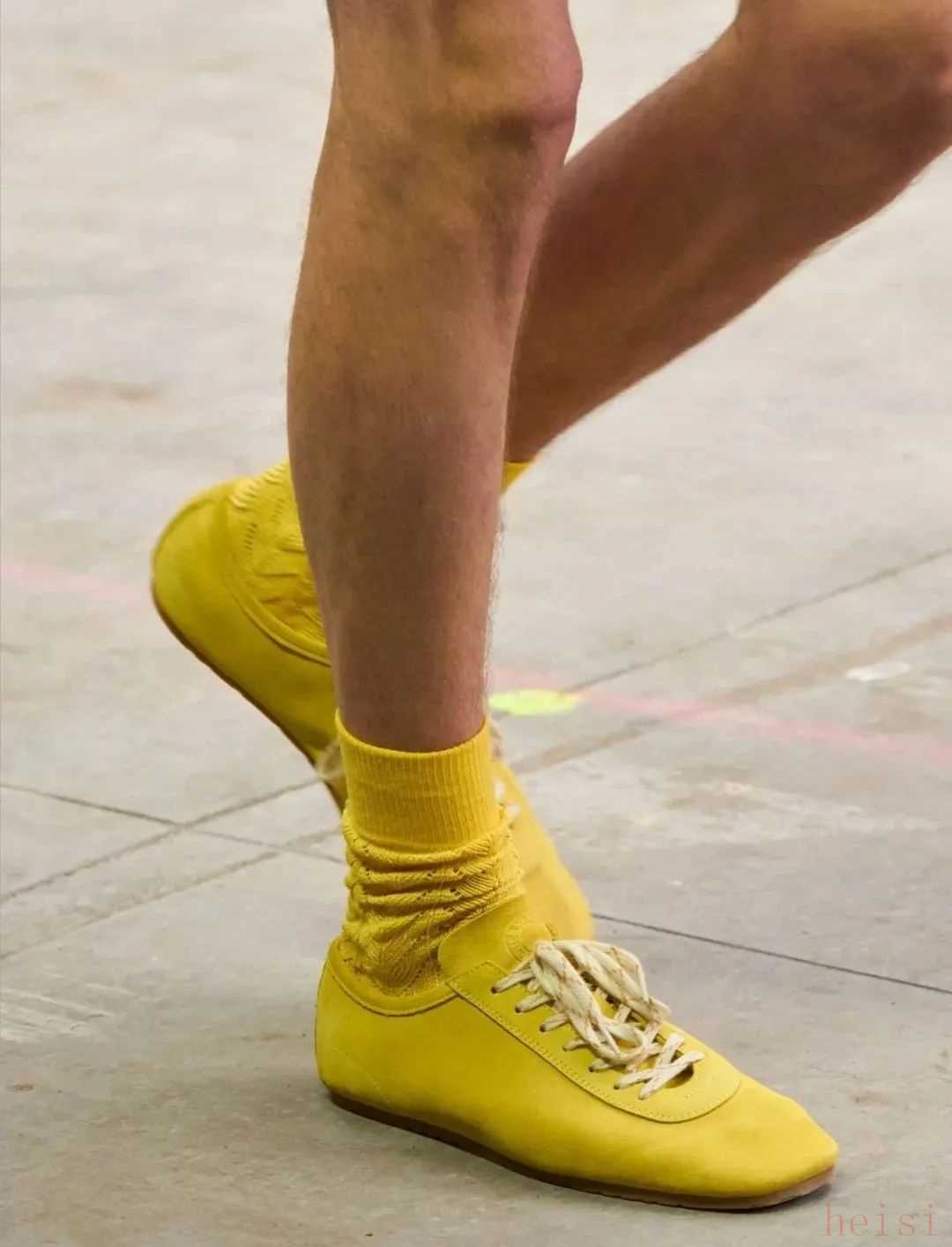 本季,Dries Van Noten將經(jīng)典訓練鞋全面回歸,延續(xù)品牌一貫的詩意色彩,融合柔美面料與復古結(jié)構(gòu),打造出一系列“優(yōu)雅運動”風格鞋款。比如,從細膩麂皮到絲感緞面,鞋面材質(zhì)構(gòu)建出“運動×輕奢”的語匯。