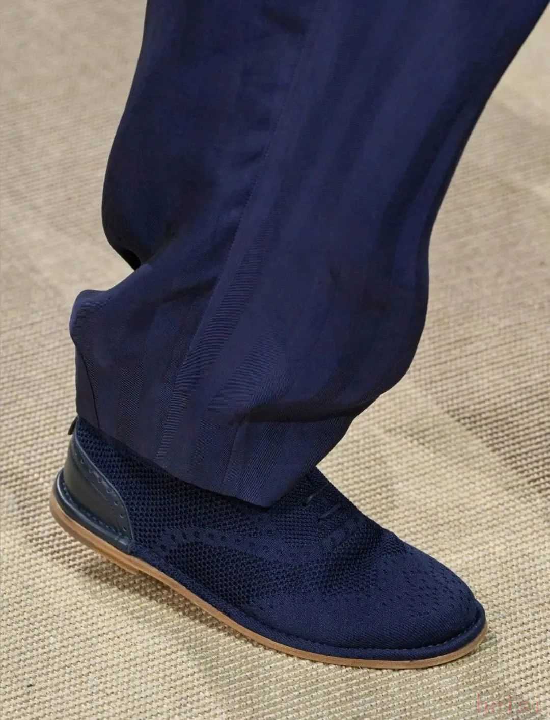 鞋履作品中,頗具手工藝質(zhì)感的鏤空、編織、繩結(jié)元素,為沙漠靴、樂福鞋和涼鞋帶來了輕松的海島度假氣息,在松弛悠閑之間透露出考究細節(jié)。