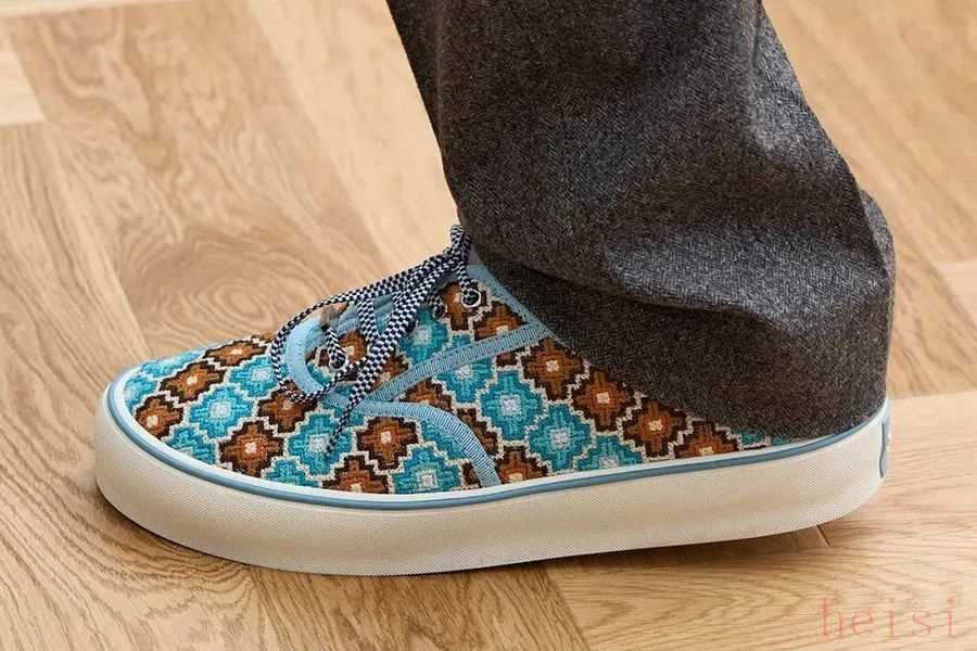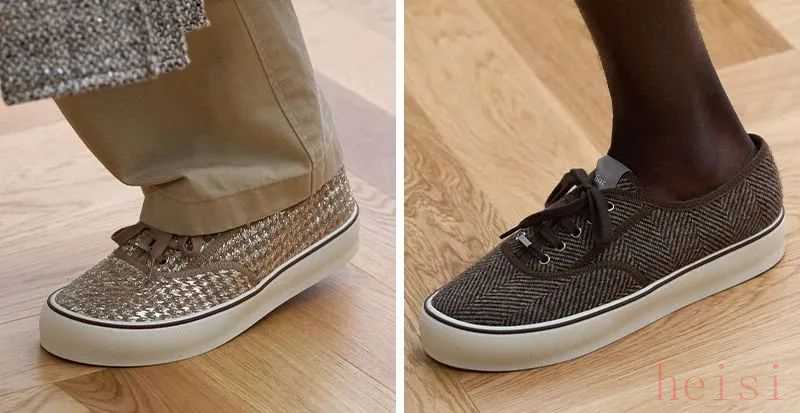 另外,本季Prada還對Vans風格的帆布鞋帶來了自己的演繹,采用更加柔和的結(jié)構(gòu)設(shè)計,并進行了做舊處理。