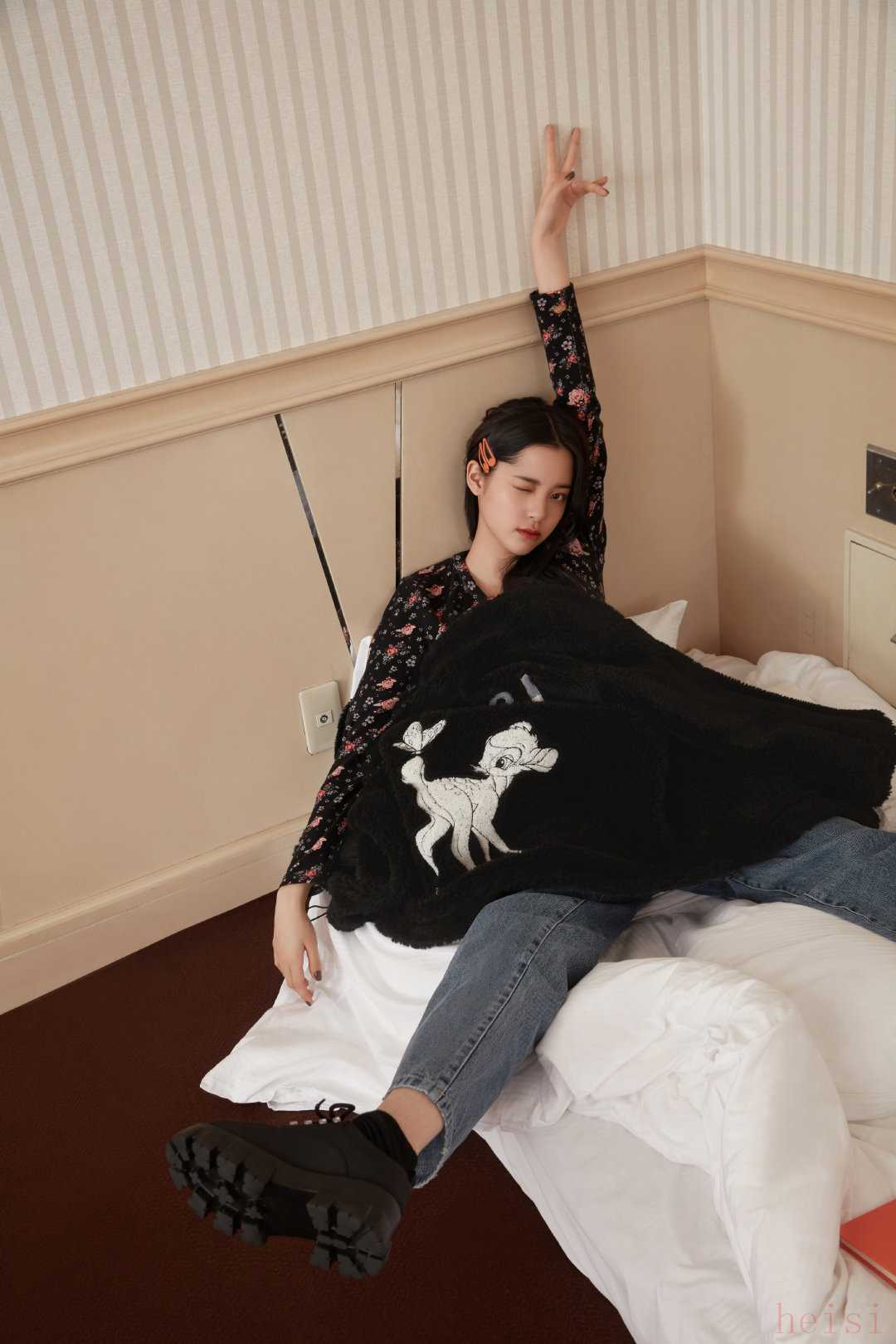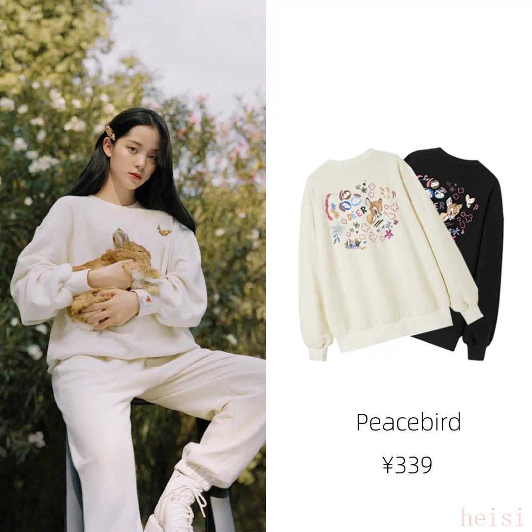 除了針織毛衣,歐陽娜娜最近和太平鳥聯(lián)名的衛(wèi)衣和外套也是很惹眼。小鹿斑比的童趣元素,減齡感十足,但又不會顯得裝嫩。