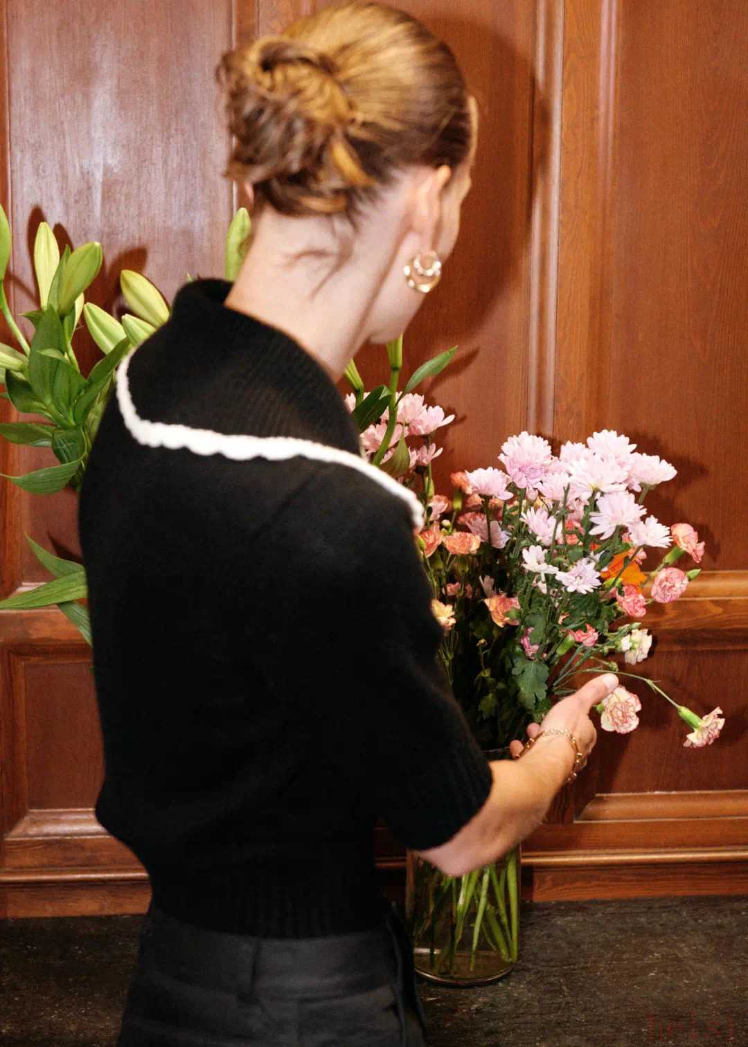 這件大襯衫領子的奶奶衫,大家應該見過很多次了,很典型的復古少女風。最近它又出了一款秋季新品,比起來更淑女氣質,超顯質感。
