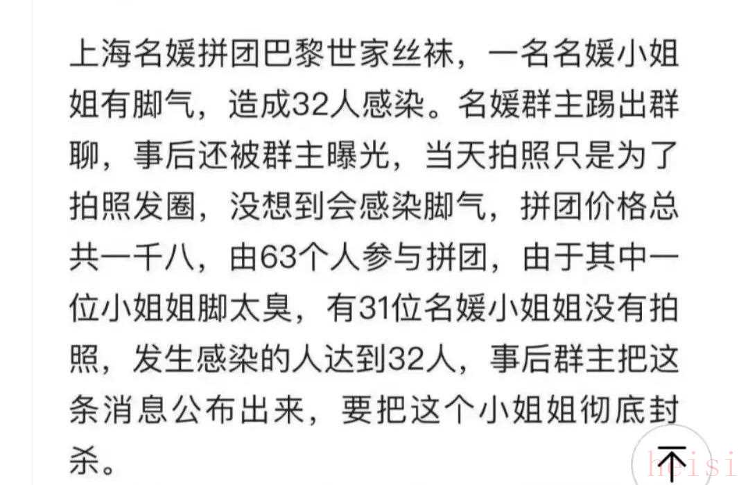 在上海一個(gè)名媛群里,有60多個(gè)人拼單了一件巴黎世家的絲襪,導(dǎo)致32人染上了腳氣......