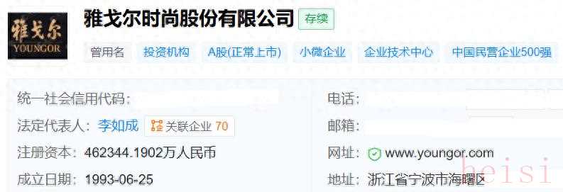 天眼查顯示,雅戈爾成立于1993年6月25日,注冊資本約為46.23億元,法定代表人是李如成,公司于1998年11月19日在上交所掛牌上市。